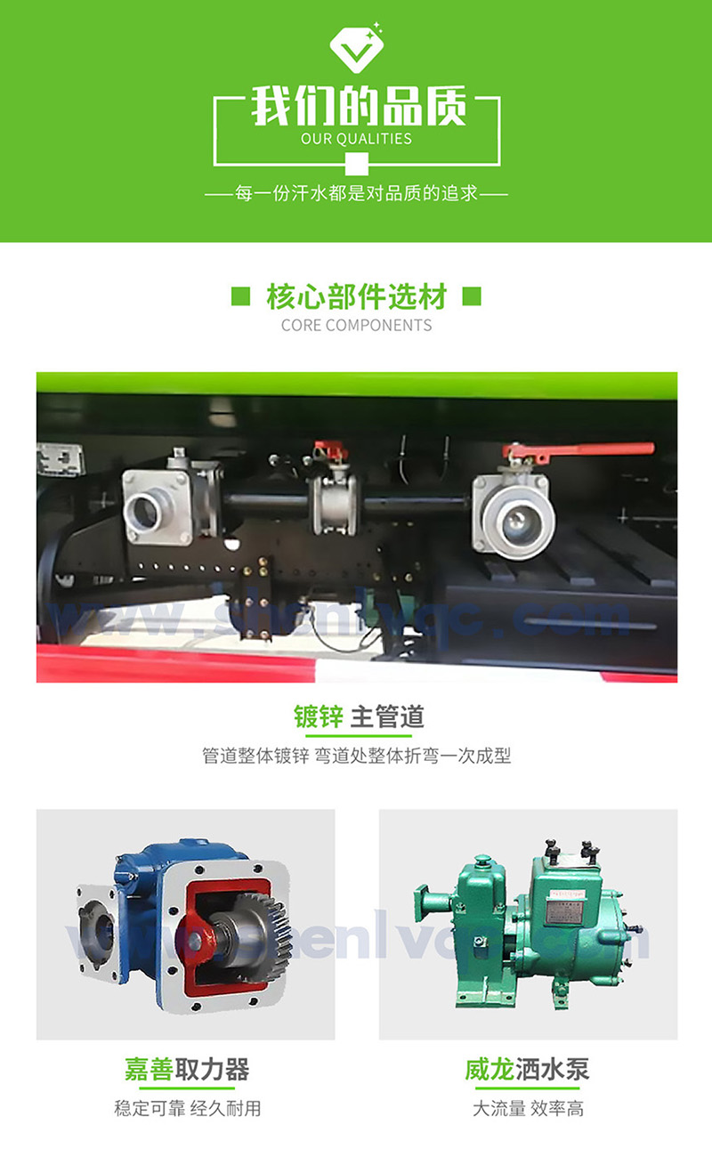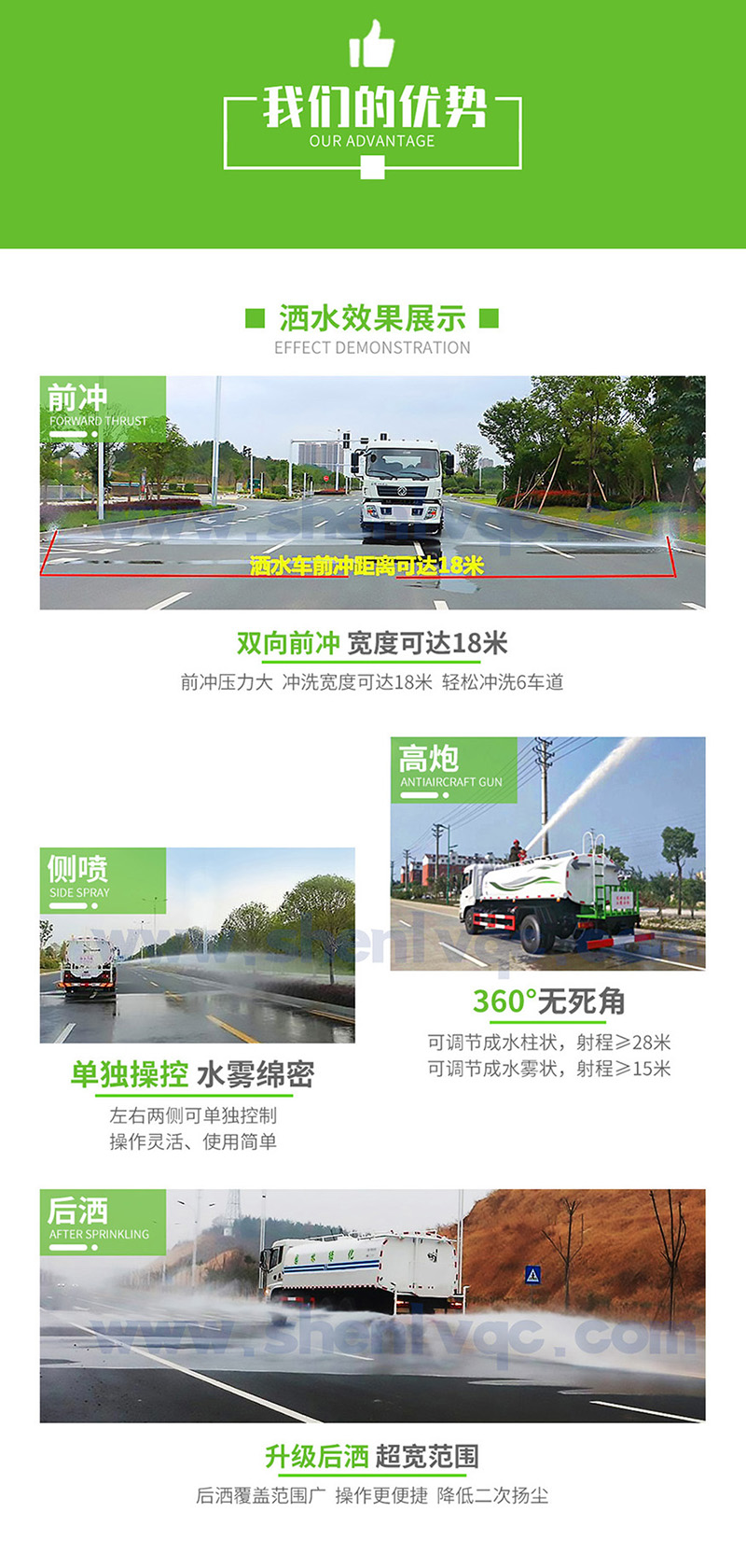 前沖、后灑、側(cè)噴、后平臺高炮、自流閥、消防接頭、濾網(wǎng)、噴頭、帶自吸自排、全功率取力器、音樂喇叭 |
