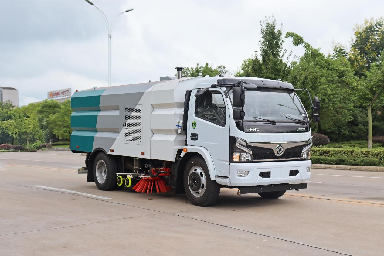 本車采用主、副兩套發動機系統,主發動機隨底盤選裝,副發動機為江西五十鈴87馬力柴油機;吸塵系統使用免維護自動離合器   及高品質免維護風機,進口防水材料濾筒,車輛具有自動脈沖清理功能,可設置脈沖間隔時間,主吸盤清吸1.9米,左右副吸盤最大清吸寬度2.8米,最大吸入顆粒100mm,吸凈率99﹪。駕駛室內電液系統集中控制,可隨時監控車輛左右后運行狀況。車輛尾部加裝噴霧壓水域裝置及過濾系統杜絕二次揚塵。